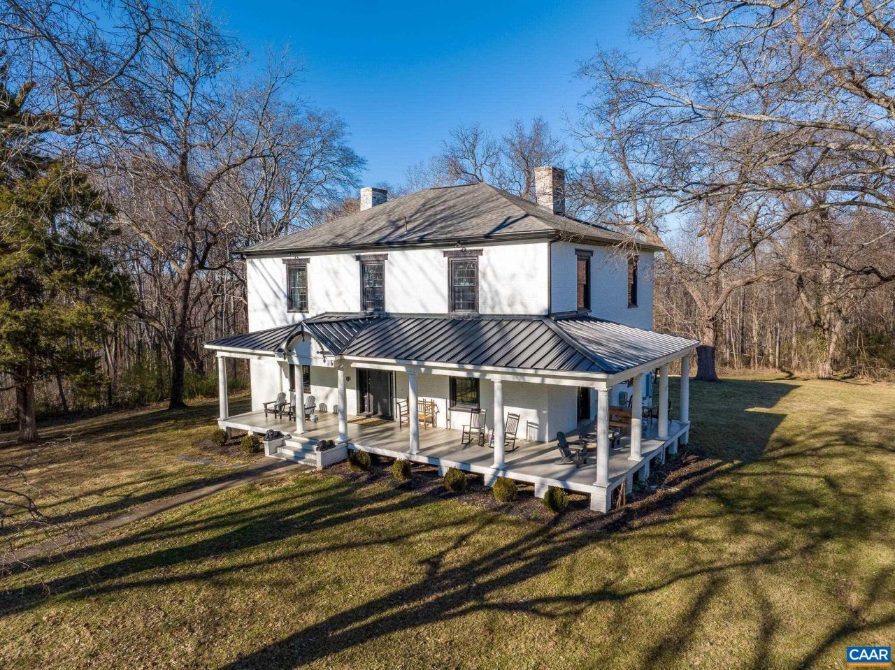 A stately example of antebellum architecture in the Greek Revival style, Glentivar retains most of its period features with recent renovation and modernization of all systems, roof, attic, and crawlspace. Large rooms with high ceilings and enormous windows, working fireplaces, original doors, mouldings and mantles, heart pine floors, and exposed brick walls and ceiling beams are some of the details that contribute to this gems timeless aura. Upscale finishes in the kitchen and bathrooms meet todays expectations for convenience and comfort, while the wraparound veranda extends elegant living space to the outdoors. Fiber internet and the original smokehouse steps from the home present the ideal work-from-home situation. Located midway between Charlottesville and Richmond, Glentivar is a home of distinction amidst the serenity of country living.