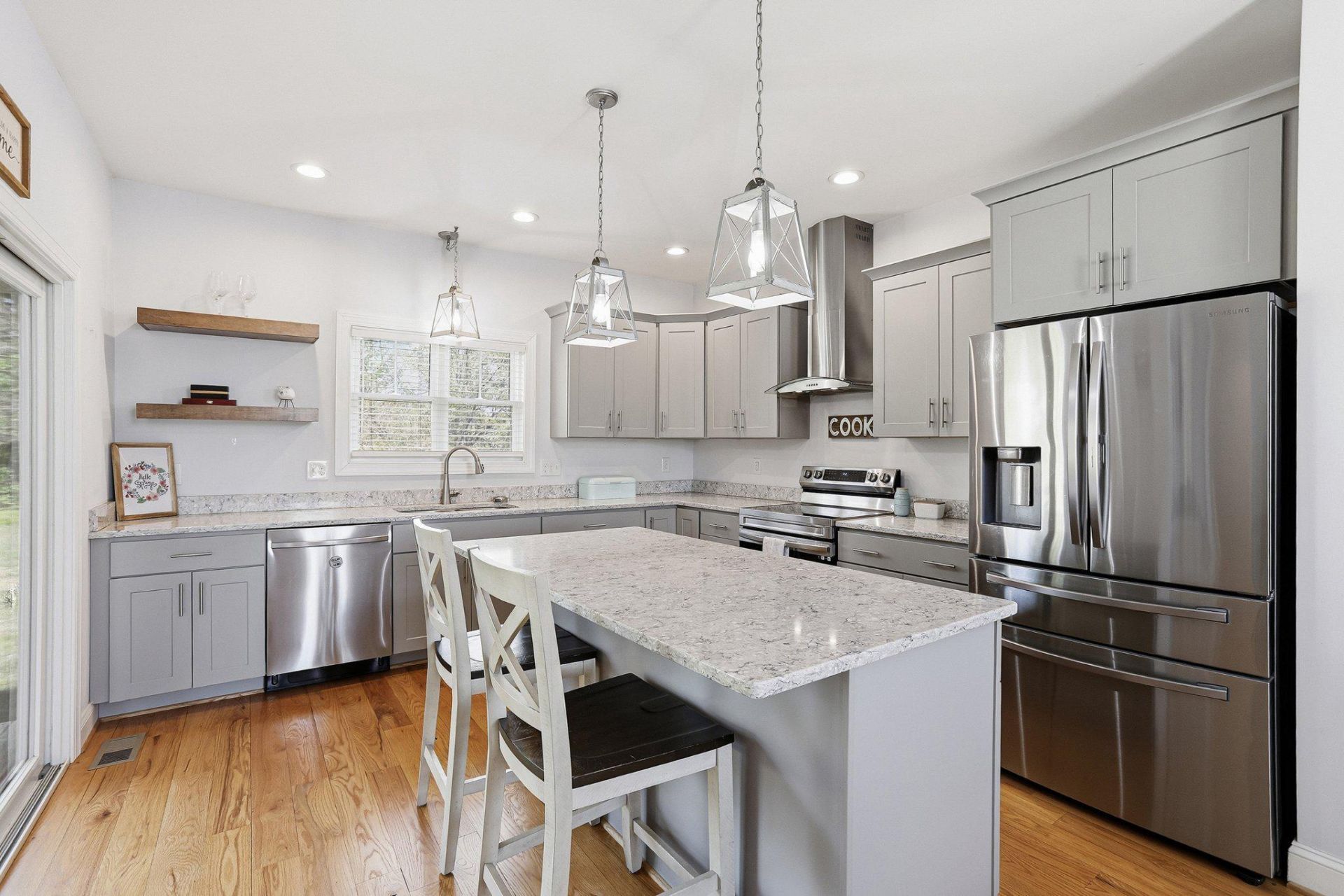 Charming Custom-Built Farmhouse on a Private .48 Acre Lot – No HOA! Welcome to this like-new, rustic-modern farmhouse that feels like a private retreat yet offers easy modern living. Built in 2022 with high-end finishes throughout, this beautifully maintained 3-bedroom, 2-bath home sits on a large private lot backing to mature trees for ultimate privacy and tranquility. Step inside through the flagstone walkway and onto the maintenance-free front porch, then enter a bright, open floor plan designed for effortless main-level living with all 3 Bedrooms on the ground floor level. The spacious Great Room features wide-plank hardwood flooring, recessed lighting, and beautiful Craftsman-style interior trim that adds warmth and character. The heart of the home is the amazing Gourmet Kitchen, complete with stainless steel appliances, including a side-by-side French door refrigerator and professional chef’s hood, elegant quartz countertops, large center island with pendant lighting – perfect for casual meals or gathering with friends, 42” cabinets with convenient pull-out shelving, and a generous walk-in pantry. Off the Kitchen is a Large Dining Room area and sliding door that leads to the inviting rear covered porch with maintenance-free flooring and ceiling fan – ideal for morning coffee or evening relaxation while enjoying the large backyard and wooded views. The inviting Owner’s Suite offers a peaceful escape with a huge walk-in closet and a private luxury bath featuring a double vanity, ceramic tile, separate soaking tub, and a sleek frameless glass shower. There are also 2 additional spacious secondary bedrooms that share a Hall Bathroom with a subway tile shower and wide plank luxury vinyl plank flooring. Additional highlights include separate Laundry Room, custom blinds throughout, and convenient crawlspace with high-over head for extra storage. Outside, enjoy the expansive backyard perfect for gardening, play, or simply unwinding in nature. The oversized 2-car garage comes with an automatic opener and custom shelving for maximum storage. With over 1,600 sq ft of finished living area, this custom-built home combines rustic charm with high-end modern comforts, and convenient main-level living. No HOA means freedom to truly make it your own. Don’t miss this rare opportunity – schedule your private showing today!