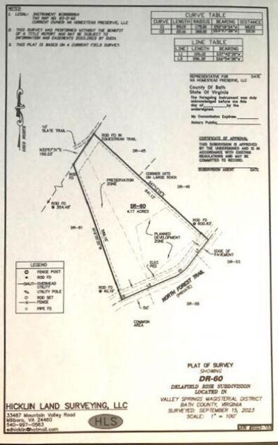 DR Lot#60, 4.17 Acres. Outstanding cleared building site with infrastructure in place. Located high on the mountain with views of the Hot Springs Gap & the historic Omni Homestead Resort Tower. Located within walking & biking distance to the Resort with all its impressive amenities offering over 40 activities including Championship Golf, a world class spa, falconry, fly fishing, hiking, tennis/pickleball, swim, shoot, ride, zip line, great restaurants & more! Named to the ''Best Resort in the South'' list by Conde' Nast Traveler (2025). Home to the award-winning Warm Springs Pools. No time or size constraint to build. Ownership provides owners use of the Old Dairy Complex in historic Warm Springs. Call Cynthia 214-616-9693