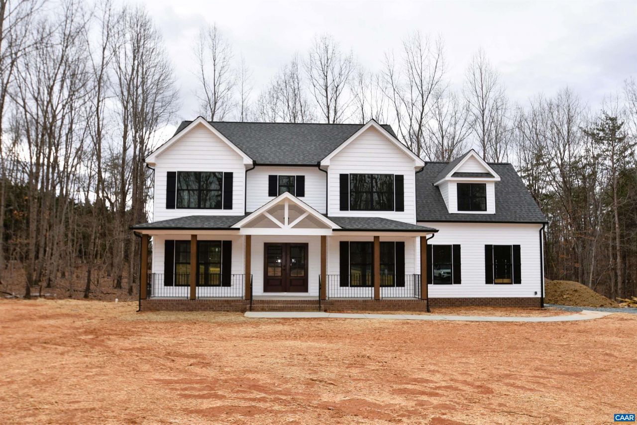 TO BE BUILT, the JOANNA model is located near the Fluvanna and Goochland line for an easy commute to Charlottesville or Richmond! Upgrades are found throughout! Exterior upgrades include Board Batt siding, wide window trim, stained French front door and 8 columns, wood look garage door with opener, full brick front porch with iron railings, extra lighting and windows, upgraded grid pattern, and 12x14 rear deck. Interior upgrades include engineered hardwood floors throughout the main level, trim package in dining room, French door in the home office, great room with gas fireplace and extra LED lights, gourmet kitchen with built in stainless wall oven and microwave, farmhouse sink, wood range hood, drawer stack cabinet, an oversized 3x6 island with pendant lights and alternate color cabinets, quartz countertops, gas range, Tier 2 36 cabinets with 3 piece crown molding and under cabinet lighting. Oak stairs with iron railings, spacious primary with 2 walk in closets and bathroom with 5 tile shower, transom window and tile flooring. All bedrooms have ceiling fans. Laundry room, pull down attic, and 2 zone HVAC finish off this new home! Old barn conveys. Ask how you can save $7,500 in seller paid closing costs. Spring completion!